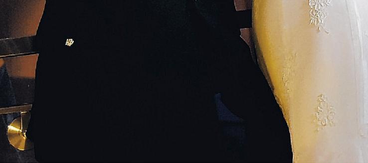VogtswentwithapowderbluetopandflarepantssetbyNewOrleansdesigner DenisioTruitt,completewithamatchingcapeandgoldheadpiece.Sheknewshe didn’twanttowearadress,andshe’dlongbeenfascinatedwiththepowderbluesuit