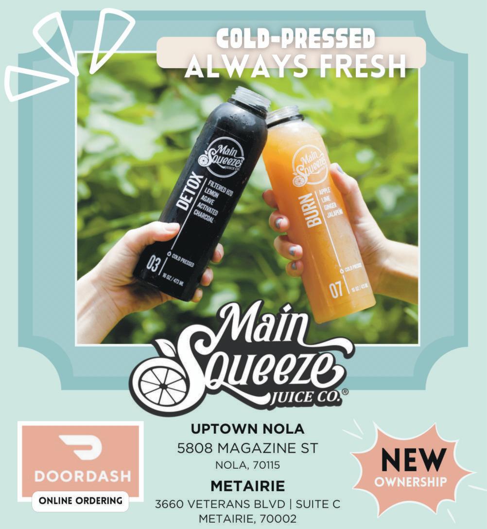 Spring DiningIssue 13 PHOTOBYDAVID GRUNFELD / THETIMES-PICAYUNE 15 Maryland Dr •$899,000 New Orleans, LA 70124 4bds /2.5 Baths /3,735Sq. Ft Fabulous Courtyard with in-ground pool Agem in the heartofCountry Club Gardens. PRICE REDUCTION RentApplication.net/LatterBlum-Uptown Licensed in Louisiana SpecializinginResidentialSales &Investment Property Corinne RobinFox Cell: 504-239-1481 cfox@latterblum.com CorinneFox.latter-blum.com REALTOR TOP OF THE LATTER TOP 40 Office: 504-861-7575 7934 MapleStreet New Orleans, LA 70118 moscasrestaurant.com 4137 Hwy90• WESTWEGO MOSCA’S Est. 1946 436-9942 or 436-8950 OPEN AT 5 FORDINNER WED-SAT Call Ahead. Large partiesavailable. 1818 Veterans Blvd., Metairie LA |504.888.2300 |nordickitchens.com Lake Vista, NewOrleans SurfInspiredFitness barre|yoga|strength|cardio y g g www.citysurffitness.com y (504)281-4174 2800 NCAUSEWAY BLVD |504-838-9128 BEST NEIGHBORHOOD BAR IN METAIRIE Where Every Hour is Happy Hour