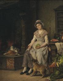 Lot673:Auguste Hadamar (French, 1823-1886), “TheSleepingCookwith MischievousCat andDog,” oiloncanvas, Estimate:$2,500-$3,500