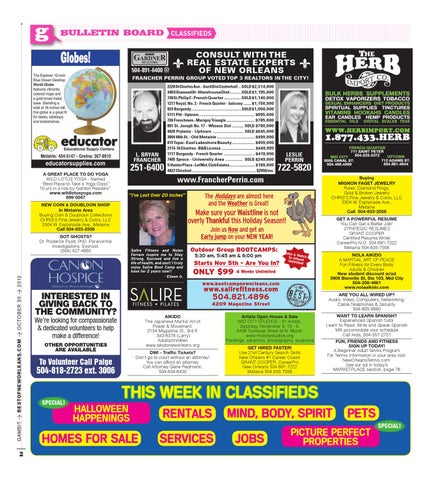 A GREAT PLACE TO DO YOGA WILD LOTUS YOGA - Named “Best Place to Take a Yoga Class” 10 yrs in a row by Gambit Readers”. www.wildlotusyoga.com 899-0047