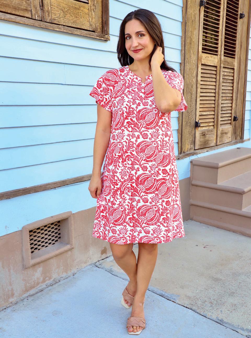 The latest 100% cotton collection features neutral and colorful wrap dresses, comfortable pants with pockets, maxi dresses, t-shirt dresses, and familiar silhouettes with new prints.