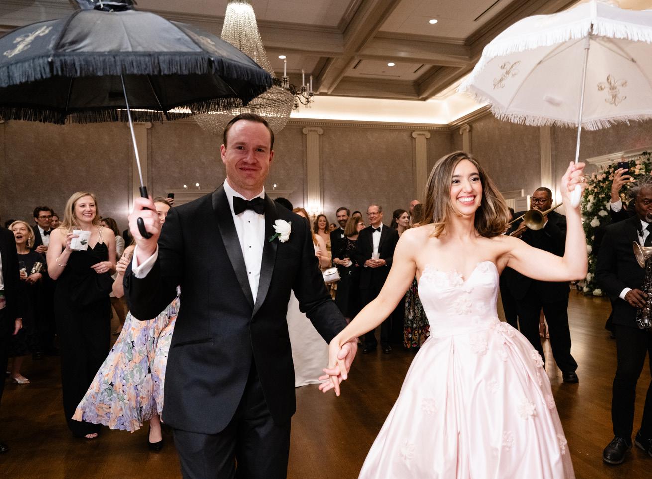After cocktail hour, guests were led onto the dance floor with a second line to “When the Saints Go Marching In.”
