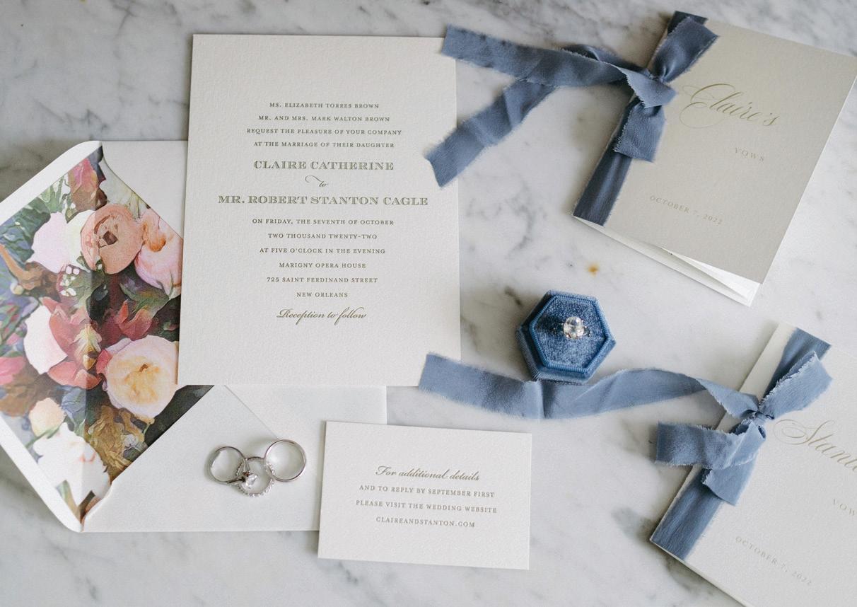 After graduating from LSU, Claire Brown moved to Austin in 2015 for her first advertising job. Within months, she was dating her future husband, Stanton Cagle. The two became engaged after nearly six years together and chose the historic Marigny Opera House for their nuptials. "I love being from New Orleans and able to share its hospitality, uniqueness, and charm with people," Claire said. "I knew once I was engaged that I wanted to get married here but that I wanted to do it my way, in ways that reflect who Stanton and I are as a couple." The venue proved to be the perfect blank slate that allowed the couple to curate their dream wedding.