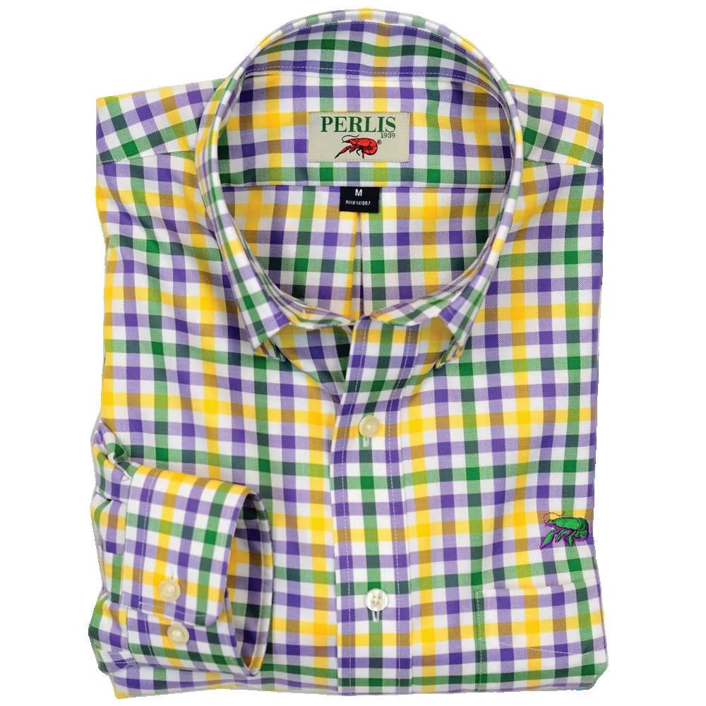 3. Mardi Gras Gingham Shirt, $125, Perlis Clothing, perlis.com