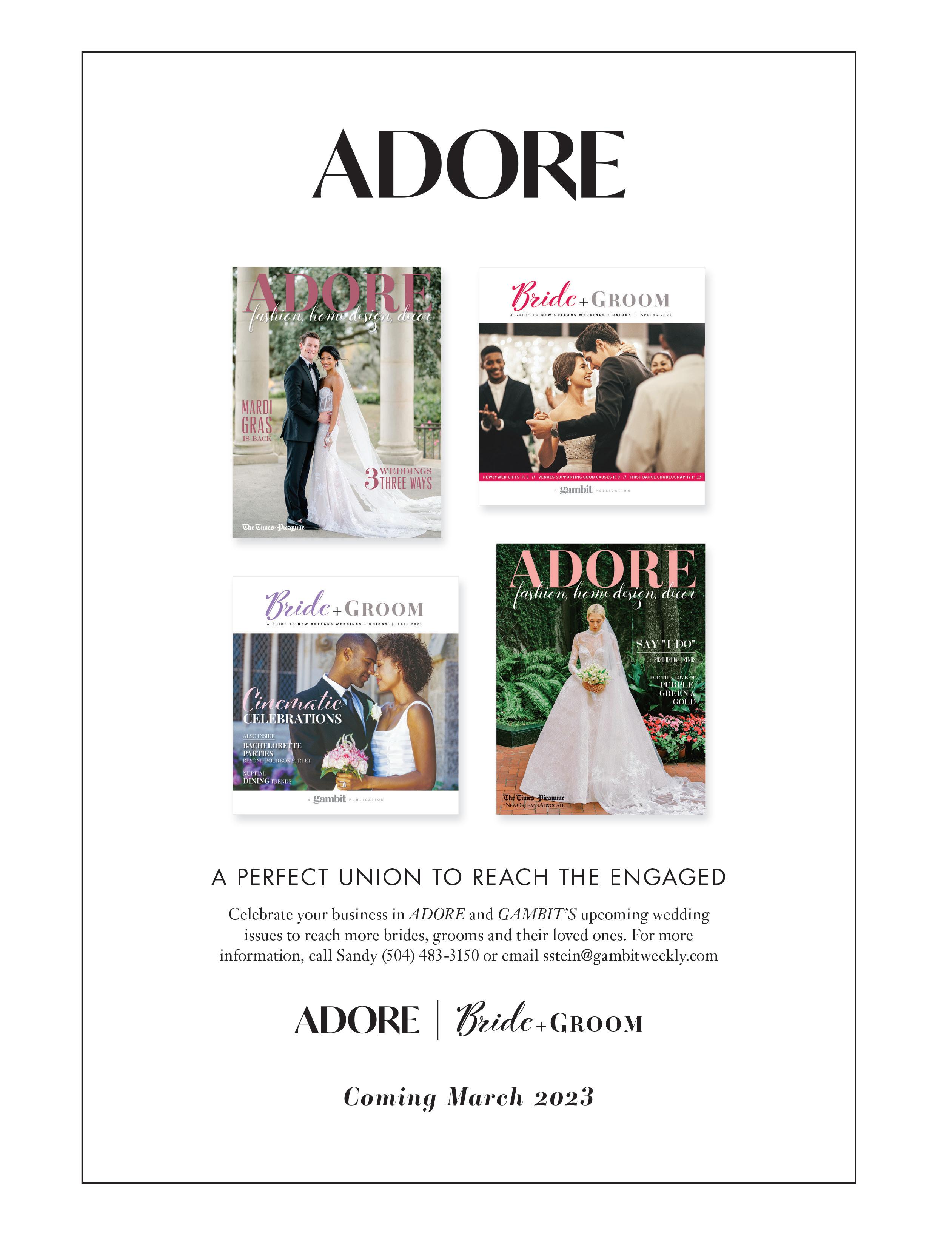 Adore is known for its local take on national trends and I love that each item in this issue can be found in New Orleans. I’m excited for the magazine’s robust and exciting year ahead. Thanks for being a part of the fun!