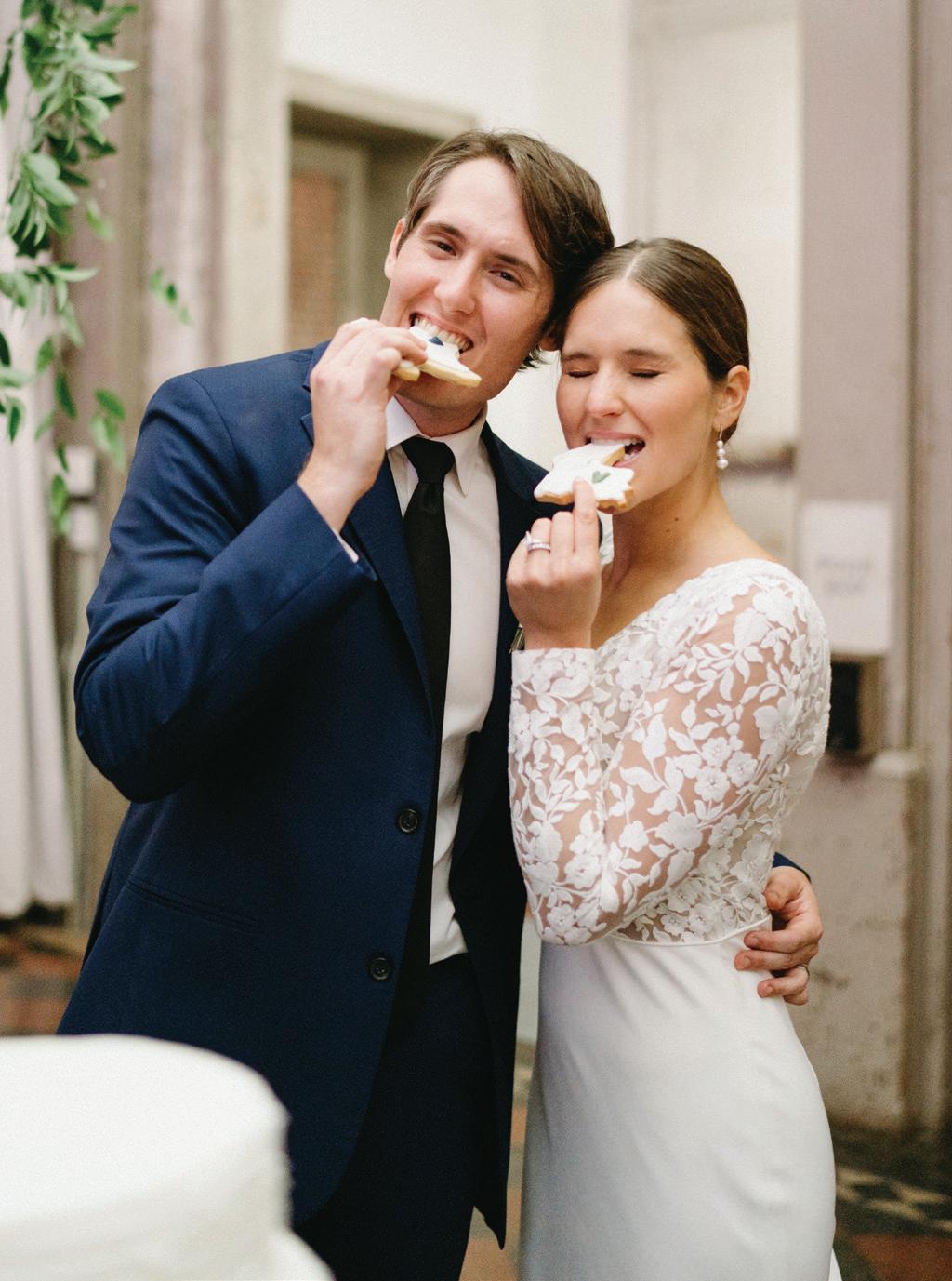 Claire and Stanton were intentional with each detail. Uninspired while trying to find a reading for the ceremony, Stanton wrote a poem that he felt suited the occasion. "I was the only one in the room who knew the words were written by Stanton. That was the only time I cried during the ceremony." Other special touches included Claire’s aunt officiating, carrying a handkerchief embroidered by Claire’s great-grandmother, having framed photos of each set of grandparents, and handmade programs.