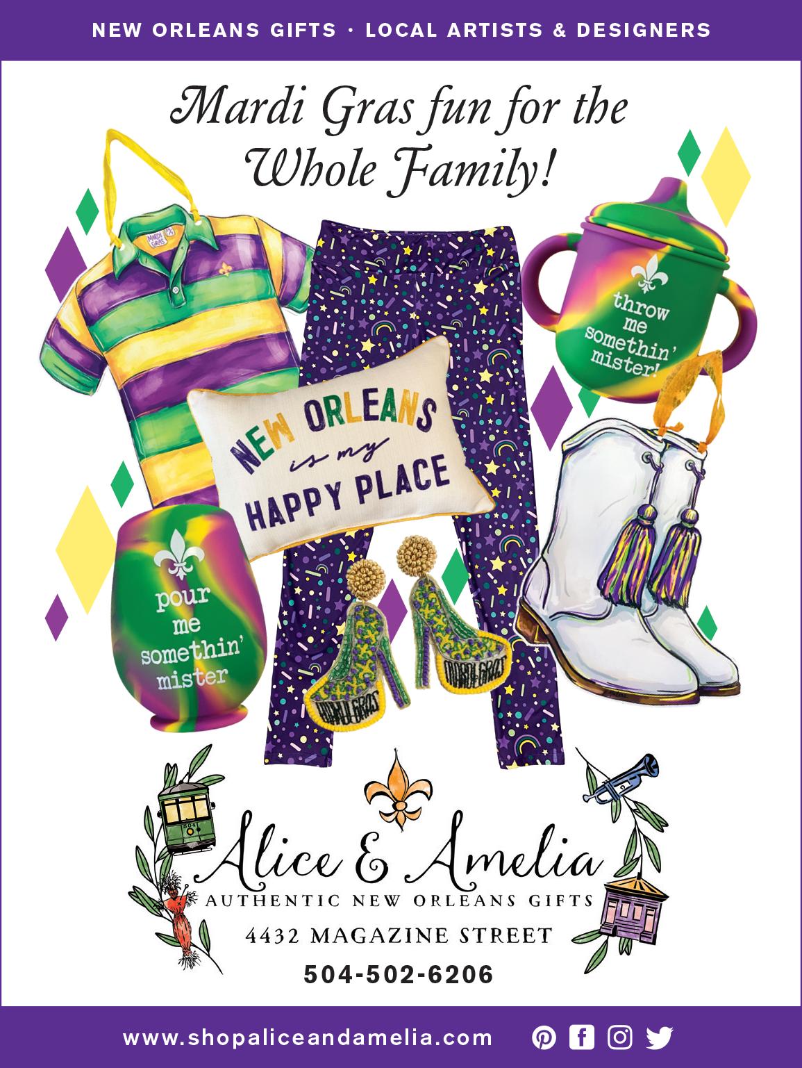 In this issue, we cover all things Mardi Gras including festive and parade route-worthy items to some of the makers behind the Carnival magic. For Valentine’s Day, we leaned into the holiday’s signature colors and sourced gorgeous clothing, accessories, and gifts. Sticking with the theme of love, we considered new types of dates — especially those with your friends, your dog, and yourself — and gave recommendations across town. You’ll also learn more about four Black business owners who are enhancing the city’s retail space through their distinctive brands.