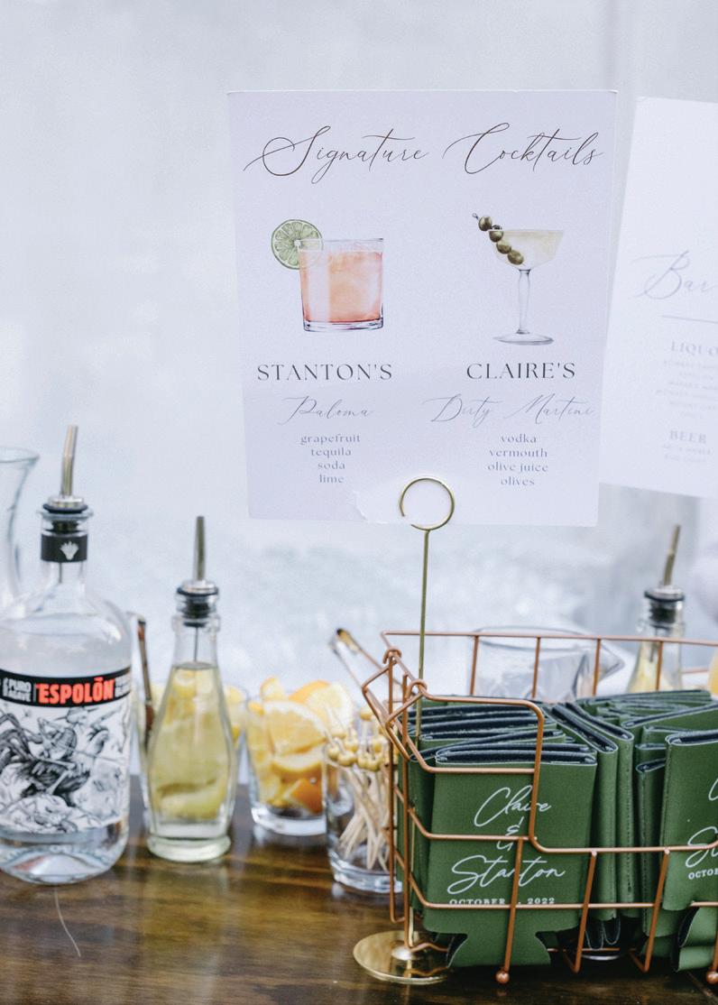 Guests sipped on specialty cocktails: dirty martinis for the bride and palomas for the groom.