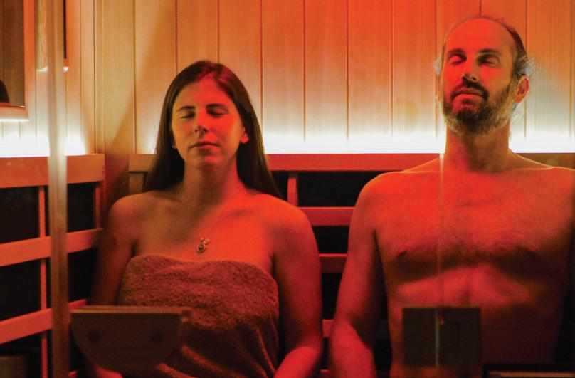 Owner Lauren Trostorff and Tyler Robinson enjoy Vibrant Market’s infrared sauna