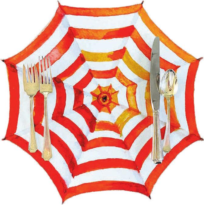 Redstripe umbrella placemat | $12fromJudyattheRink (2727PrytaniaSt.,504-8917018;judyattherink.com).