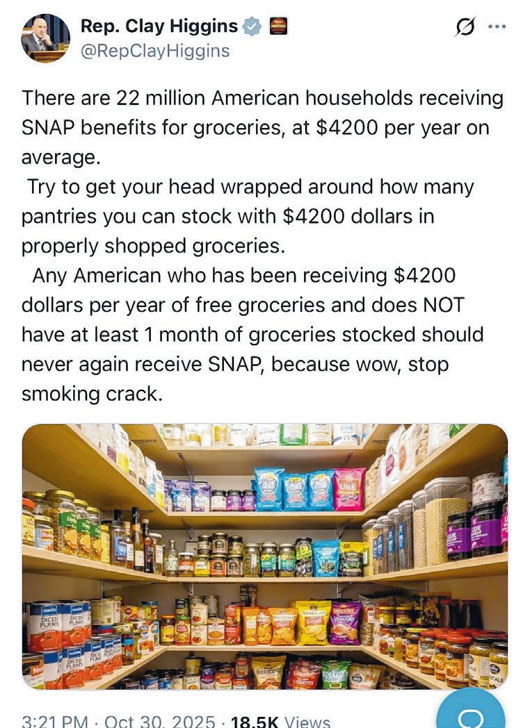 Louisiana Congressman Clay Higgins is totally fine with soldiers’ kids starving
