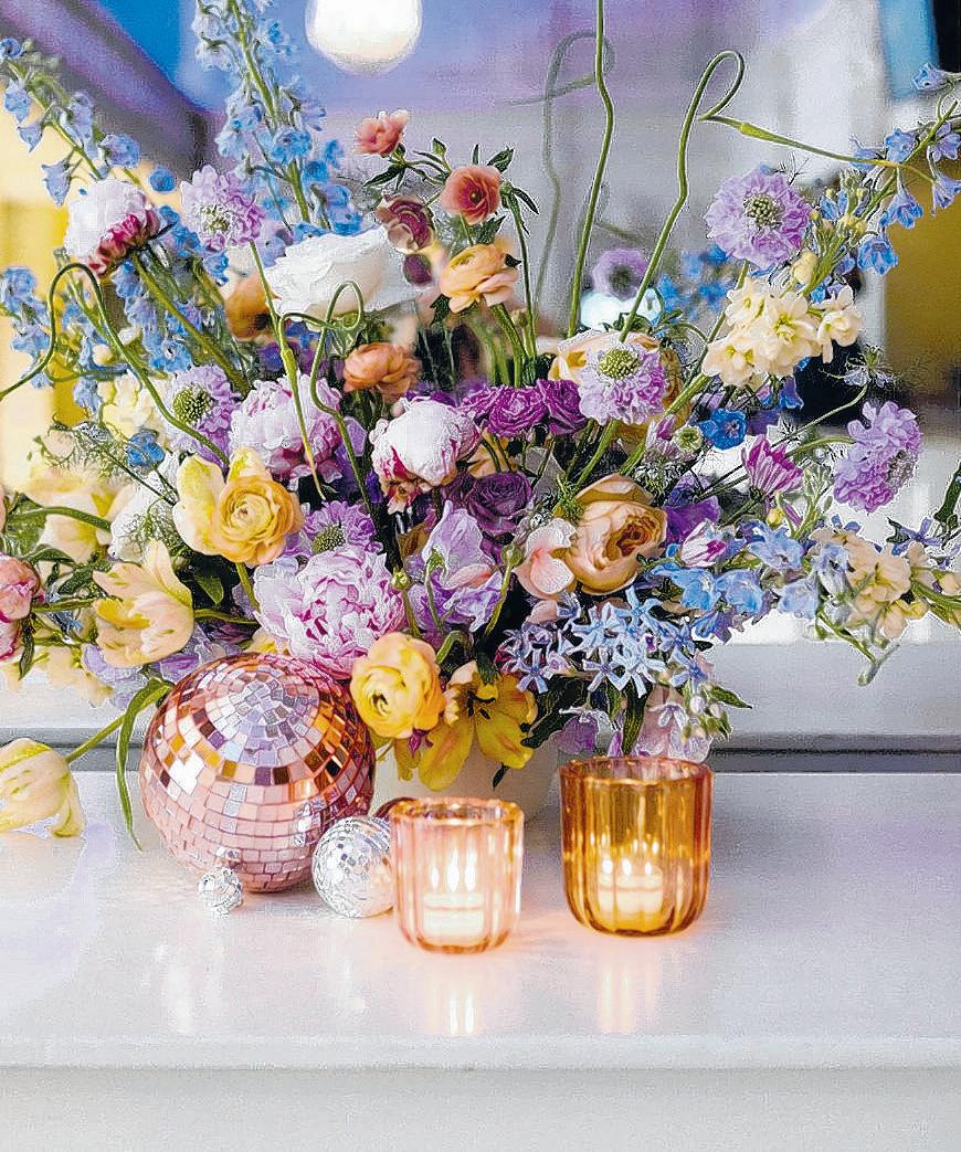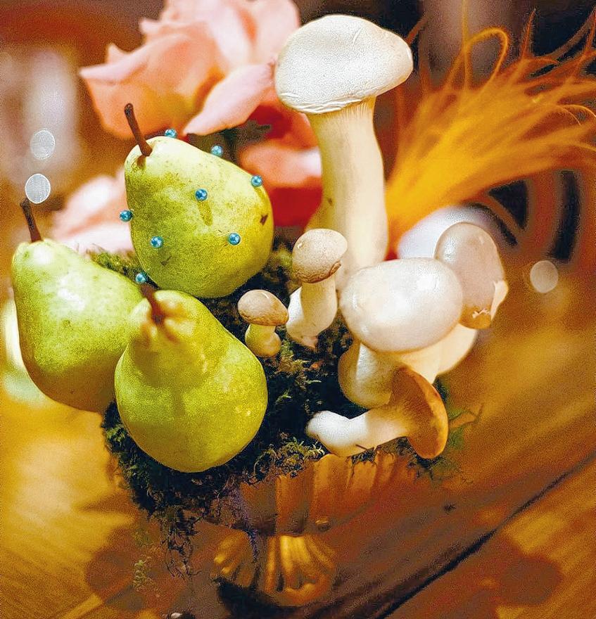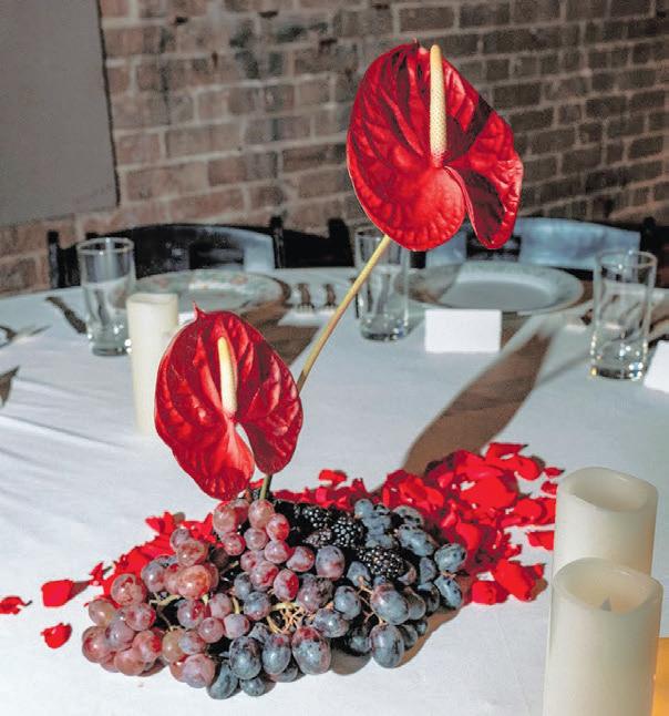 says. She’s lately been incorporating seasonal fruits that are bedazzled, painted or cut in half and styled into floral arrangements.