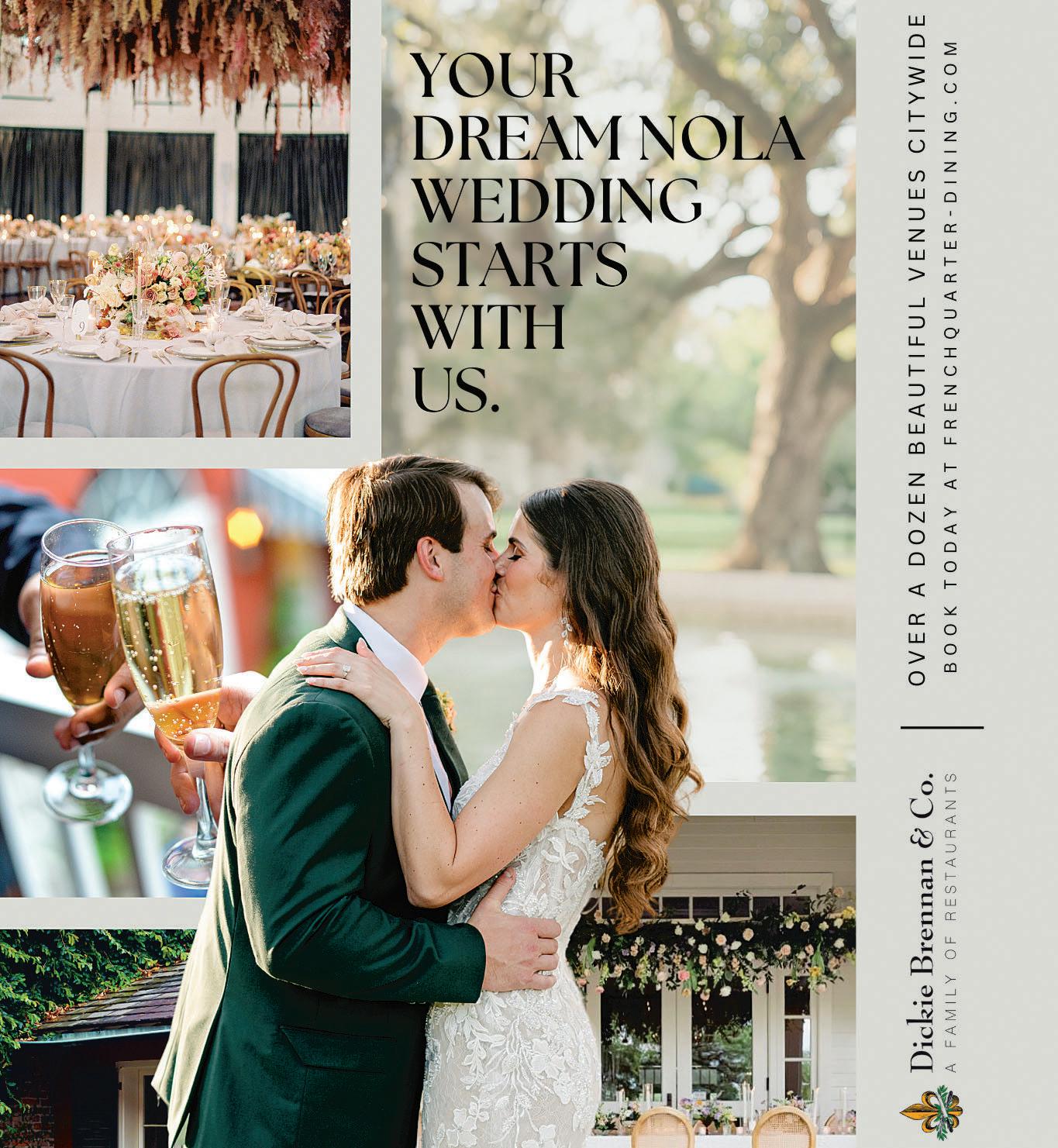 New Orleans & Company, the city’s ofcial destination marketing organization, ofers FREE services to make your wedding unforgettable! We help with venue and vendor connections, group hotel rates, and New Orleans brochures for your guests. With its stunning architecture, oak-lined streets, and European charm, New Orleans is the perfect wedding destination. Our wedding specialist provides resources to simplify planning, and our complimentary city guide is filled with valuable information to get you started. Let us help bring your dream wedding to life! Contact Lisa Ochomogo at LOchomogo@ NewOrleans.com or (504) 566-5065 to begin planning.
