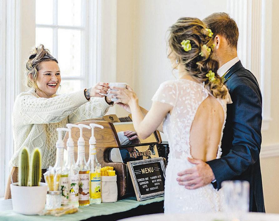 Event Espresso Catering brings the cofee shop experience directly to you! We provide catering for all types of events, from ofce meetings and large conferences to backyard gatherings and elegant wedding receptions. Whether it’s a brunch wedding or an all-night celebration at a hotel or event venue, your guests will appreciate this special addition. Our skilled baristas serve unlimited gourmet beverages, ofering everything you’d find at your favorite café, made with the highest quality organic, fair-trade, and freshly roasted cofee beans. You can even customize any event with logos, monograms, custom sleeves, stir sticks, and anything else you may want! With minimal setup, just a power outlet needed, we handle everything, ensuring a seamless and hassle-free experience so you can focus on the rest of your event!