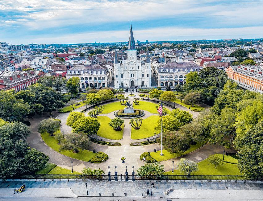 In theheart of theFrench QuarteronJackson Square, flanking St.Louis Cathedral, aretwo NationalHistoric LandmarkSpanish Colonialbuildings of theLouisiana State Museum —the Cabildo andthe Presbytère.