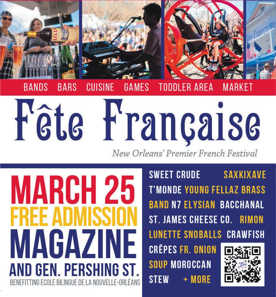 ChubbyCarrier &the Bayou Swamp Band,KermitRuffins & theBarbecue Swingers,Erica Falls, LosGuiros,Hash Cabbage, Anne EliseHastings and Her Revolving Cast of Charactersand ValerieSassyfrasare amongthe performers. From 11 a.m. to 6p.m.Saturday,March 25. Visitfreretstreetfestival.org forinformation