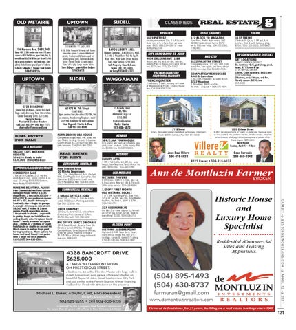 (504) 895-1493 (504) 430-8737 farmeran@gmail.com www.demontluzinrealtors.com Licensed in Louisiana for 32 years, building on a real estate heritage since 1905