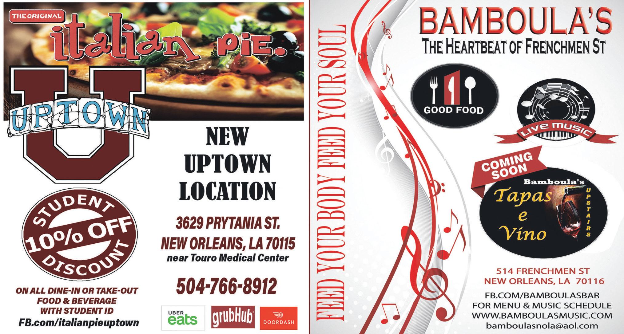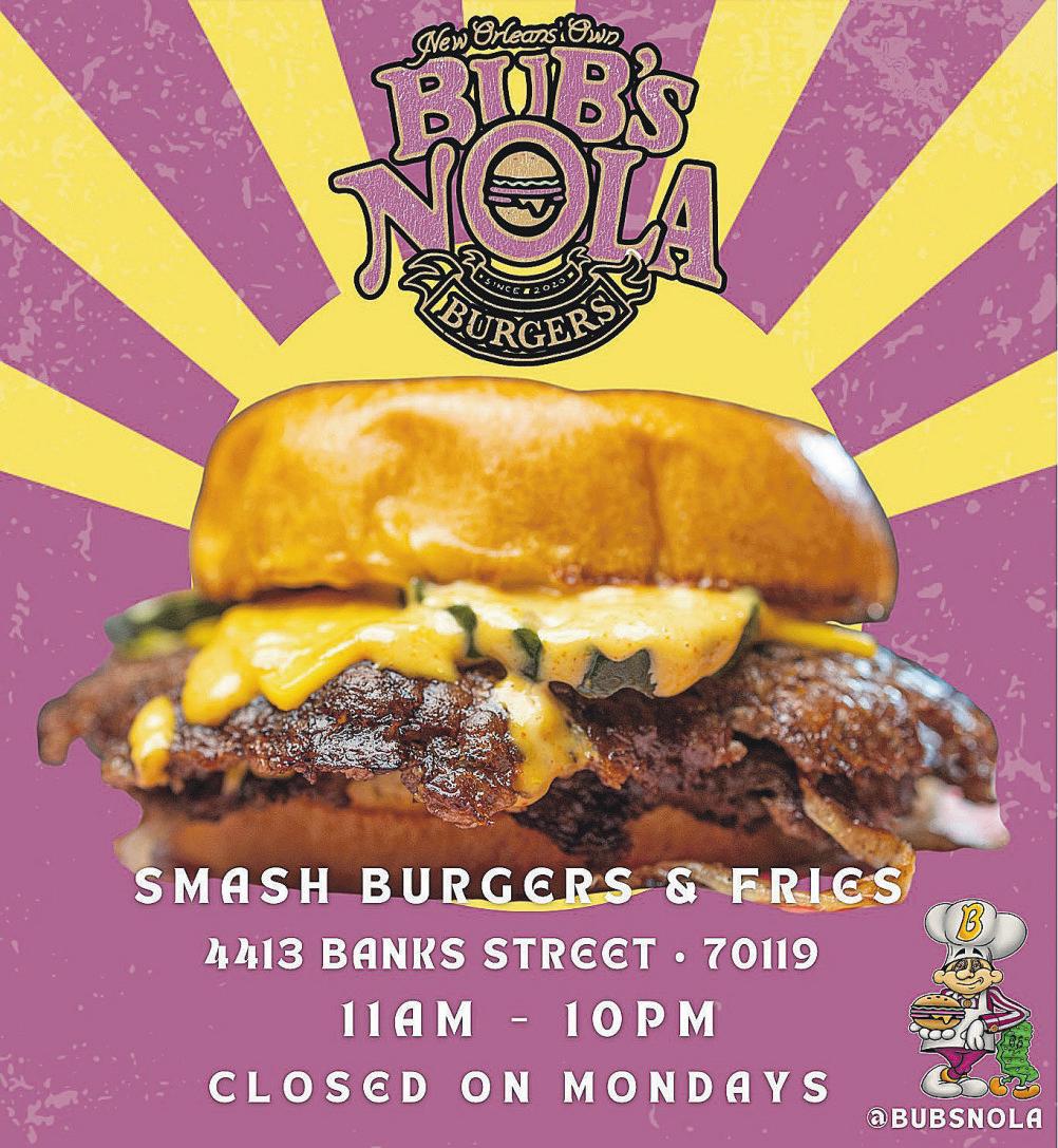 CURRENT HOURS: MON-FRI 7am-1pm SAT 7am-Noon graduations AREAROUND THE CORNER! LIVE ON FACEBOOK EVERYWED AT 7PM! DOWNLOADOUR APP 517METAIRIERD. OLDMETAIRIE |504-510-4655| nolaboo.com FOLLOW US! DreamingFESTIVALS!of 203 HOMEDALE ST. ♣ LAKEVIEW ♣ (504) 483-0978 OPEN 11 AM TILL 3AM #2 BESTDIVEBAR MON – $1 OFFDRAFT PINTS TUES – $3 TITO’S TILL 7PM WED– $3 JAMESON TILL 7PM EVERYDAY SPECIAL HIGHLIFE &JAMESON OR FIREBALL –$6 PATIO IS OPEN BEFORE,DURING&AFTER JAZZ FEST! Introducing the revolutionary SEMAGLUTIDE WEIGHT LOSS PROGRAM, specially designed to help you: -achieve aguaranteed 20% total body weight loss of fat -prevent hypertension, heart disease, strokes, and renal disease -improve your overall health and well-being Don’tlet excess weight hold youbackany longer Call Dr.Joseph Gautreaux today 985-709-7093 •504-292-2129 Flexible hours &Saturdayappointments available FOLLOW MY WEIGHTLOSS JOURNEY ON FACEBOOK