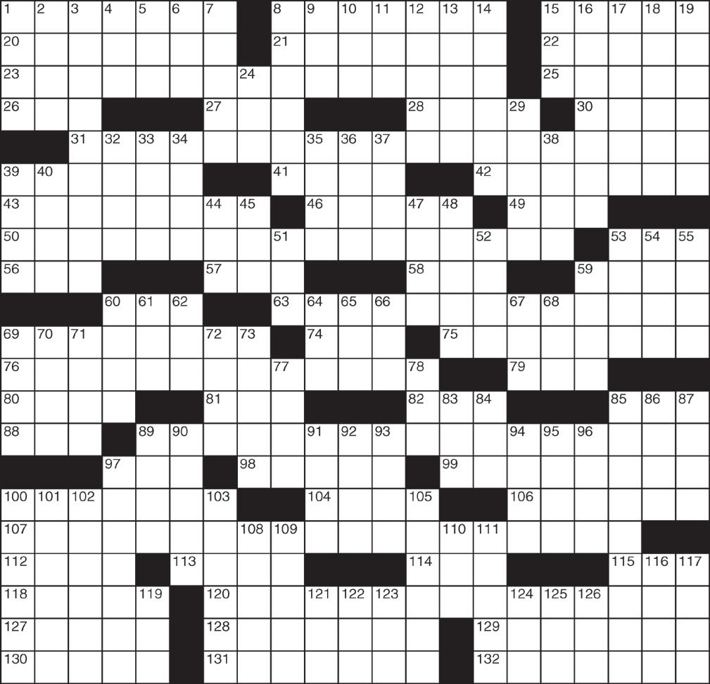 PUZZLE 104 “This Is Life” journalist Lisa 106 Totally in favor of 107 Chuck Berry 112 “Casablanca” woman 113 “Dies —” (Latin hymn) 114 Schwarz 115 Peculiar 118 Just making, with “out” 120 Liza Minnelli 127 Roaring cat crossbreed 128 Remove loose coverings from 129 “Tartuffe” playwright 130 Thick 131 Ancient Jewish ascetics 132 Slung mud at DOWN