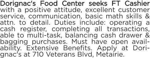 2 GA MB IT > BES TO FN EW OR LE AN S. CO M >M AY 2-8>2 02 3 MJ’s METAIRIE SHOPPINGCENTER 1513 MetairieRoad •504-835-6099 mjsofmetairie.com MJSMETAIRIE NOW OPEN Mon.-Fri.10-5 &Sat. 10-3 MJ’s Frames $14.99 -$17.99 Gifts for mothers and teachers! Mugs $14.99 $15.99 Insulated cups $17.99 Candles $20.99 -$35. Birth stone Snoball Pendant $14.99 Chains sold separately CHEAP HAULINGLLC YOUPOINT WE MOVE IT Construction Trash Household Junk Removal Spring Cleanouts FAST SERVICE, FAIR PRICES Call Frank 504-292-0724 Letourcrewhelpyouwithallyourcleaningneeds! •Disinfecting/SanitationServicesAvailable• •GeneralHouseCleaning• •AfterConstructionCleaning• Residential&Commercial •Licensed& Bonded 504-232-5554 cristinascleaningnola@gmail.com Family owned and operatedsince 1996 CleaningService in Cristina’s 504-654-9547 ROOFING DONERIGHT THE FIRSTTIMETHEFIRS IME INTERIOR/EXTERIOR •Drain Cleaning •Pressure Washing •Sheetrock •Painting •New Gutters / Repairs •Patio Covers •Decks •Siding/Fascia &much more! ✁ ✁ ✁ ✁ ✁ ✁ ✁ ✁ CALL JEFFREY • (504) 610-5181 GETER DONE & GONE LICENSED, BONDED, &INSURED CallJohn 815-508-5384 Roofing & Construction EmergencyRepairs QualityExpeditedService Asphalt,Shingle&MetalInstallation Insuranceclaimswelcome! State LicenseNo: 889028 READYTORETIRE? TIME FORANOTHER CHALLENGE? Sell your business through iNetBusiness Sales. Contact us at 504.544.9715,email at inetbizsales@gmail.com or through the QR in this ad Susana Palma RESIDENTIAL•COMMERCIAL AFTER CONSTRUCTION CLEANING SANITIZING/DISINFECTING LIGHT/GENERAL HOUSEKEEPING HEAVY DUTYCLEANING Locally owned &serving the New Orleans area for over 31 years lakeviewcleaningllc@yahoo.com 504-250-0884 504-309-6662 Fully Insured & Bonded CLEANING SERVICE Lakeview Licensed in Louisiana LATTER &BLUM |NEW ORLEANS |504.861.7575 504.722.7640 Mobile |pking@latterblum.com TriciaKing.com NEWLISTING CHARMING2BED,2BATH CONDO IN DESIRABLE COTTON MILL! 16’CEILINGS, ORIGINAL HARDWOOD FLOORS, OPEN FLOORPLAN& MORE! 920 POEYFARRE UNIT 337 $339,000