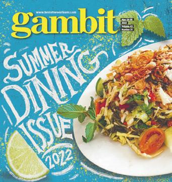 weeklybyCapital City Press, LLC, 840 St.Charles Ave.,New Orleans, LA 70130. (504) 486-5900.Wecannot be held responsiblefor thereturn of unsolicited manuscriptsevenifaccompaniedbyaSASE. All material published in Gambitiscopyrighted:Copyright 2023Capital CityPress, LLC. Allrights reserved.