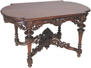 Lot419:American Carved Mahogany Center Table, 19th c.,inthe manner of John HenryBelter, H.-28in.,W.- 51 in., D.-30in. Est. $1,000-$2,000