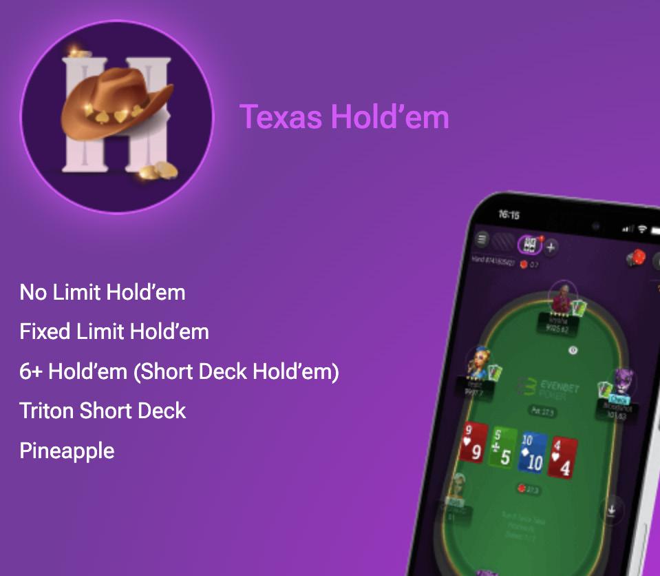 + Texas Hold’em is the most popular poker variant worldwide. The most distinctive feature is the game with two hole and five community cards used by all players when making combinations.