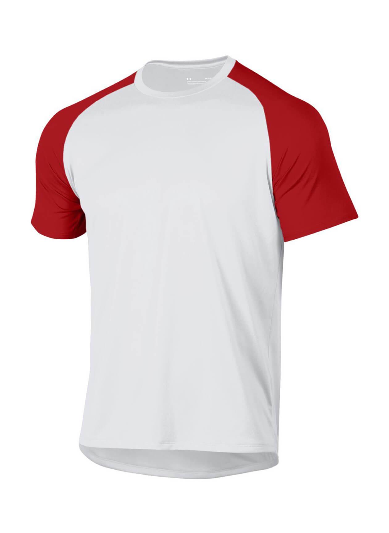 UA Tech fabric is quick - drying, ultra - soft & has a more natural feel. Features: 100% Polyester. Moisture transport system wicks sweat & dries really fast. Anti - odor technology prevents the growth of odor - causing microbes. Raglan sleeve construction for comfort and mobility. Curved hem with a slight drop tail - Locker tag below center back neck. Sleeve color - block options available.