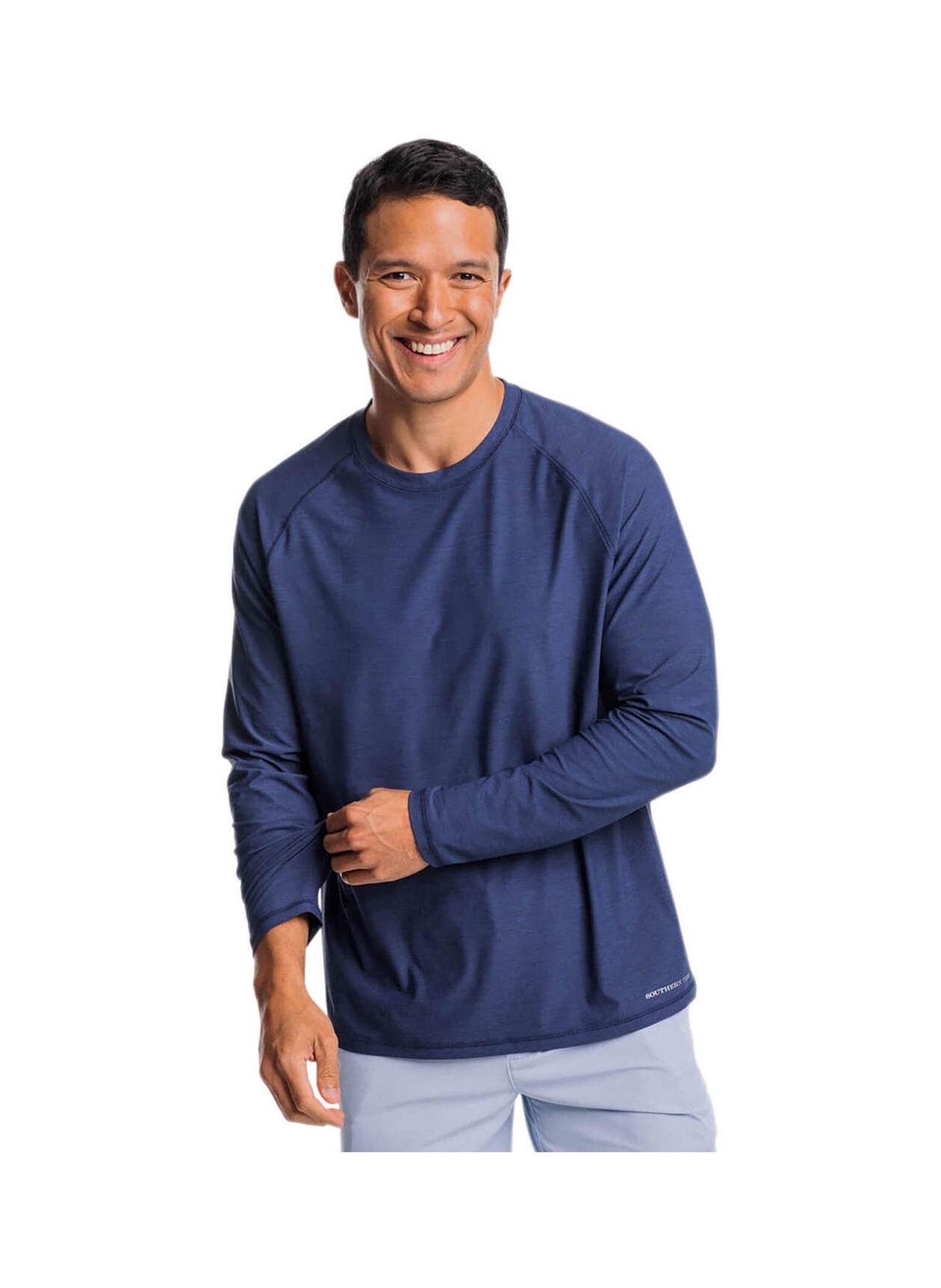 Performance Long Sleeve Tee is anything'sbut basic. This everyday essential stays cool with every movement. Ideal for active days outside - hiking, running, boating. Features: 46% brrr Polyester/ 46% Polyester /8% Spandex. Self fabric. Self sleeve cuff and hem.