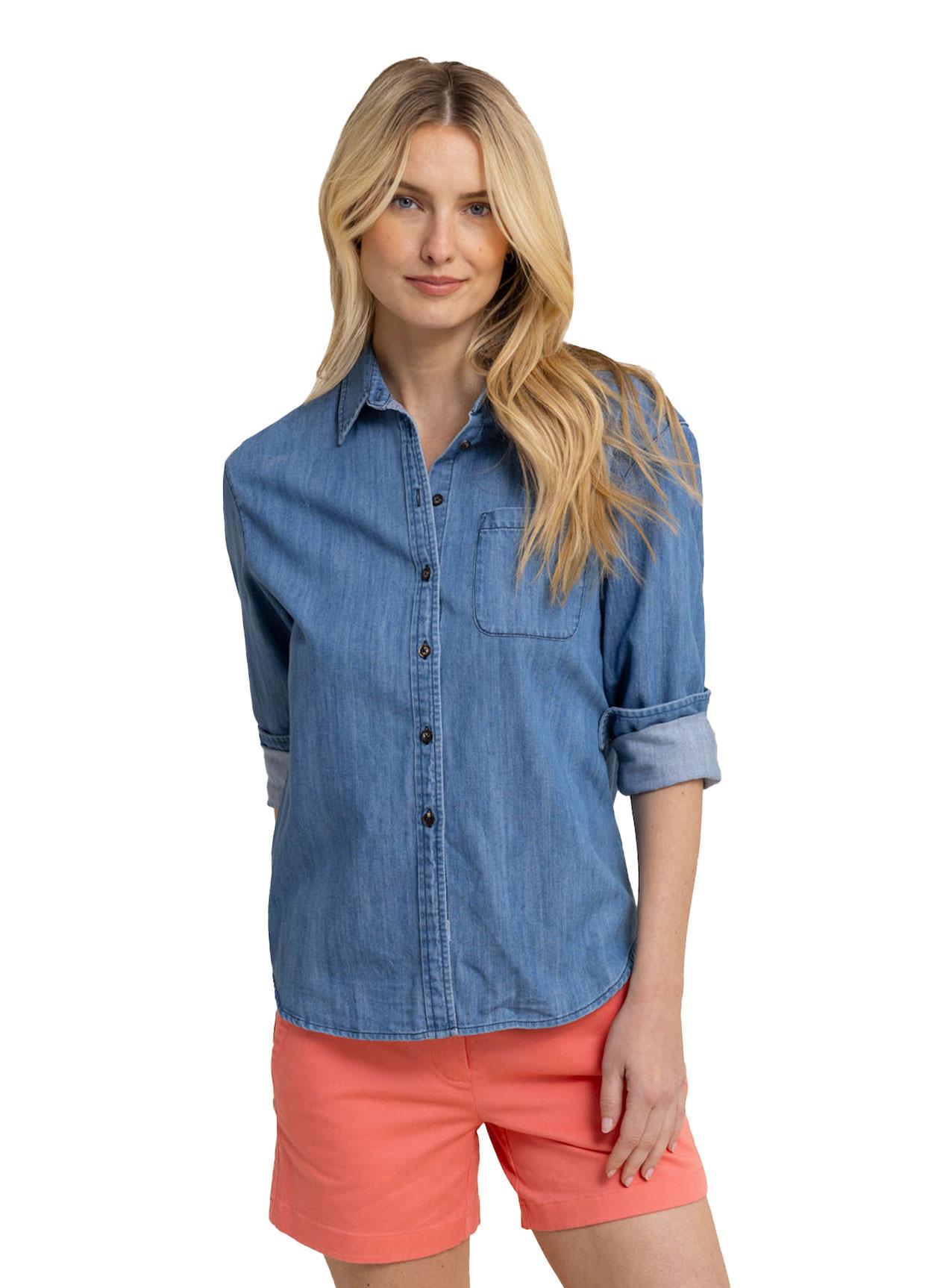SOUTHERN TIDE WOMEN'S MEDIUM WASH INDIGO KATHERINE DENIM SHIRT