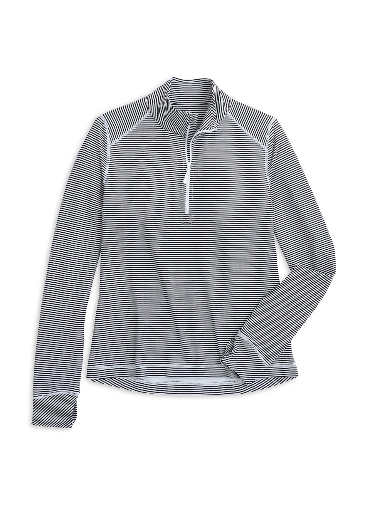 Reach for this performance layering piece for morning workouts or while perfecting your backhand. The striped fabric features stretch, quick - dry technology, and UPF protection. The Runaround Quarter - Zip Pull - Over is the perfect companion for all outdoor activities, delivering a superior range of motion and protection from the elements. 75% Nylon 25% Spandex