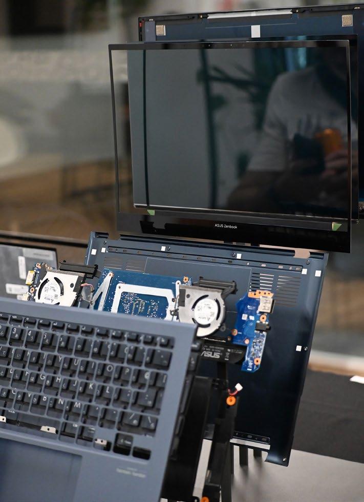 eventu bolo, samozrejme, priblíženie nosných bodov celkovej filozofie predmetného laptopu. Ekologicky prívetivý, výkonom prekvapivý, dizajnovo očarujúci, proporciami šokujúci a spoľahlivosťou podkutý - takto som si to ja celé pekne zoradil do vláčiku, a keďže paradoxne v čase, keď nám ASUS novú S13 ukazoval, som ju mal ja už dávno otestovanú, a tak som na slová PR manažéra mohol už len uznanlivo prikyvovať. Všetky uvedené body sú totižto relevantné, a tam, kde ASUS reálne šetrí prírodu výrobou plne recyklovateľných obalov, prichádza ďalej aj s obnoviteľnými materiálmi v zmysle plastu a hliníka, čo je trend budúcnosti. Zaznieť by mala aj fráza "plazmová keramická zmes", čo je honosné pomenovanie špeciálnej textúry vrchného veka. V skratke ide o proces, kde sa hliníkové šasi ponorí do tekutej bázy a následne sa pridá vysoký stupeň elektriny, čím sa na povrchu zobrazí drsná textúra dodávajúca zariadeniu špeciálny look. Finálnym doplnkom je už len vybrúsenie loga pomocou vodného lúču a vizuálne podmanivé umelecké dielo je dokonané.