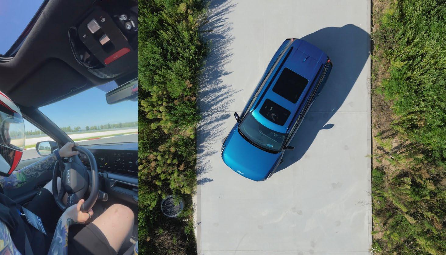 spracovanie infotainmentu a takmer nulovú latenciu počas interakcie so softvérom. Preto v tomto smere skúsim opis kvalít EV9 trocha zostručniť. Základom je tu trojitý panoramatický displej, tvorený dvoma 12,3-palcovými obrazovkami a 5,3-palcovým panelom určeným výhradne pre klimatizáciu, ktorý pôsobí ako keby vypadol z vozu Herrera Outlaw GTS (znalci videohernej kultúry vedia, o čom je reč). Grafika je ostrá, odozva okamžitá a celé používateľské rozhranie je prehľadné a intuitívne.
