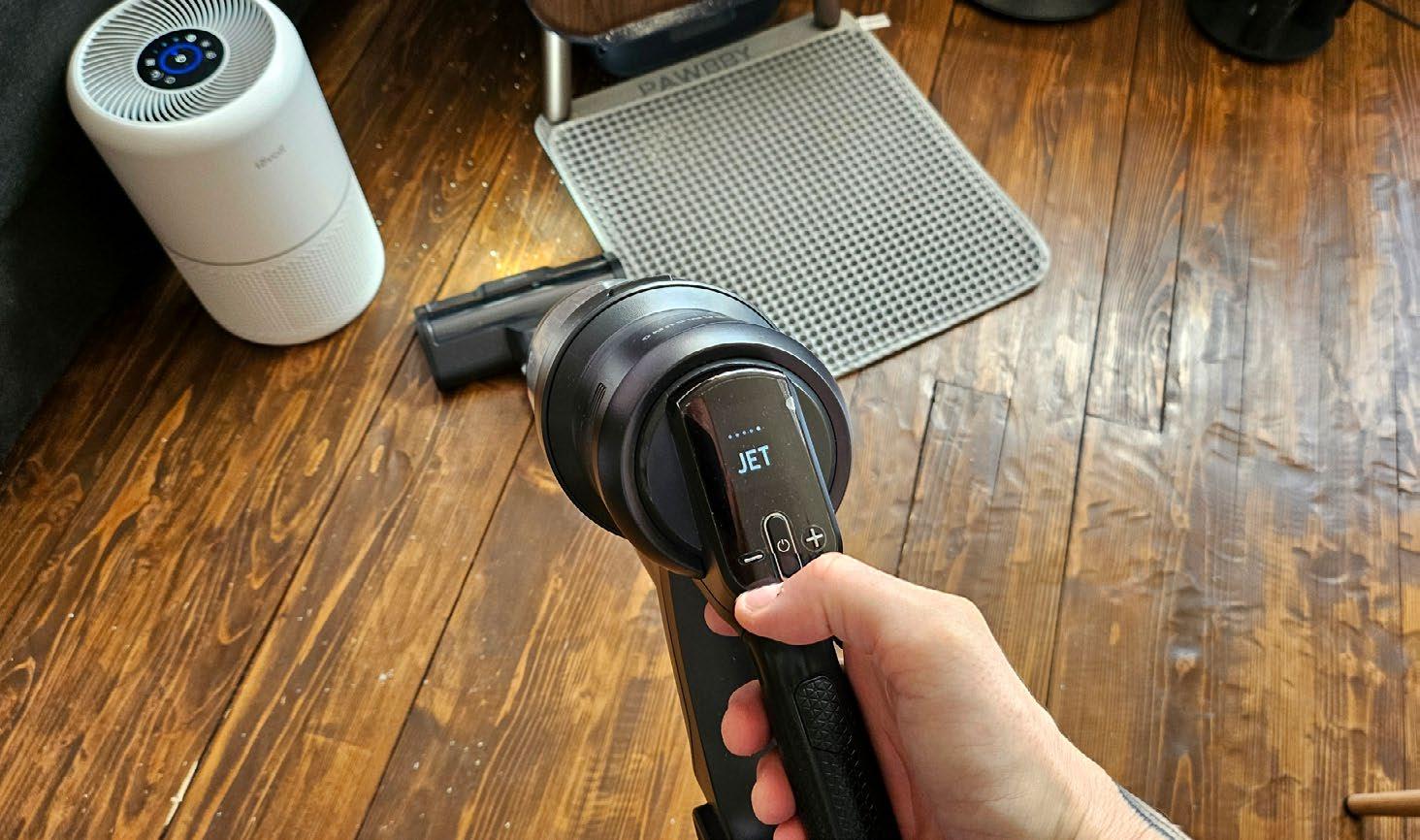 V ultimátnom teste proti srsti našej Lucy nadstavec Pet Tool+ zvládol odstrániť takmer kompletnú vrstvu chlpov, no hlavná kefa Active Dual Brush mala pri dlhších vlasoch tendenciu sa zamotávať. Samsung síce explicitne promuje špeciálnu technológiu, ktorá má údajne zabrániť namotávaniu vlasov
