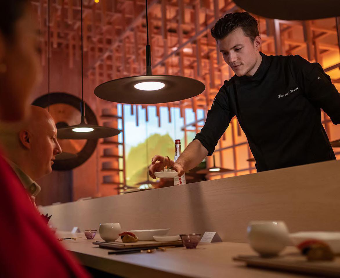 sar Hotel et du parc aquatique Rulantica de l’Europa-Park Resort. Ce «spectacle pyrotechnique pour les sens» (ainsi a-t-il été défini), mis au point par Thomas Mack, associé-gérant du parc à thème allemand et par Oliver Altherr, expert en gastronomie et PDG de Marché International, est une expérience inoubliable qui associe les délices culinaires du chef espagnol Pablo Montoro et de sa brigade, des contenus multimédia (de MACK Animation e MACK Solutions), des parfums, des musiques (signées par le studio de production berlinois T-Rex Classics) et une toute nouvelle technologie pour attractions brevetée. Pendant les deux heures que dure l’expérience, les convives voyagent dans les 11 salles du restaurant et grâce à l’aide de ledwall, projections, parfums, sons et huit plats raffinés, ils plongent dans des univers sensoriels palpitants, basés sur divers thèmes comme l’océan, l’Asie, une navette spatiale et l’univers.