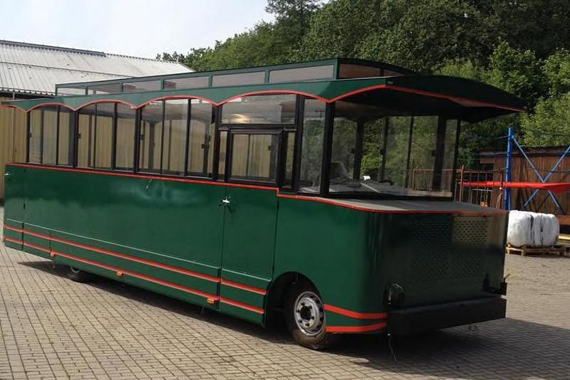 Diesel automatic locomotive with Toyota Landcruiser V8 chassis, plus 3 enclosed wagons. Power: 280 HP. Capacity: 90 people (54 seats + 36 standing). Electric doors, air conditioning and many more options. Mileage: 12,500km. / Locomotiva a motore V8 Landcruiser Toyota, Diesel automatico + 3 vagoni chiusi. Potenza: 280 CV. Capacità: 90 persone (54 sedute + 36 in piedi). Porte elettriche, aria condizionata e molto altro. Kilometraggio: 12.500km.