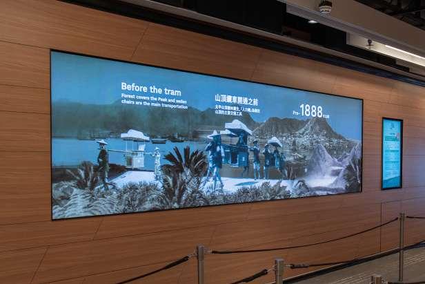 Mentre stanno in fila, i passeggeri possono ora salire su una replica delle primissime carrozze del Peak Tram, distanti anni luce da quelle odierne.