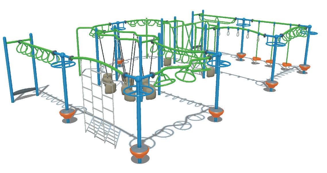 We took everything we learned inventing the permanently installed obstacle course and condensed it into a compact fitness experience for children ages 5 to 12. The Stadium features 10 exciting challenges in less than 1,200 square feet. With optional integrated shade and human-powered electronic timing system, it's the perfect way to keep kids active at a park or school play area.