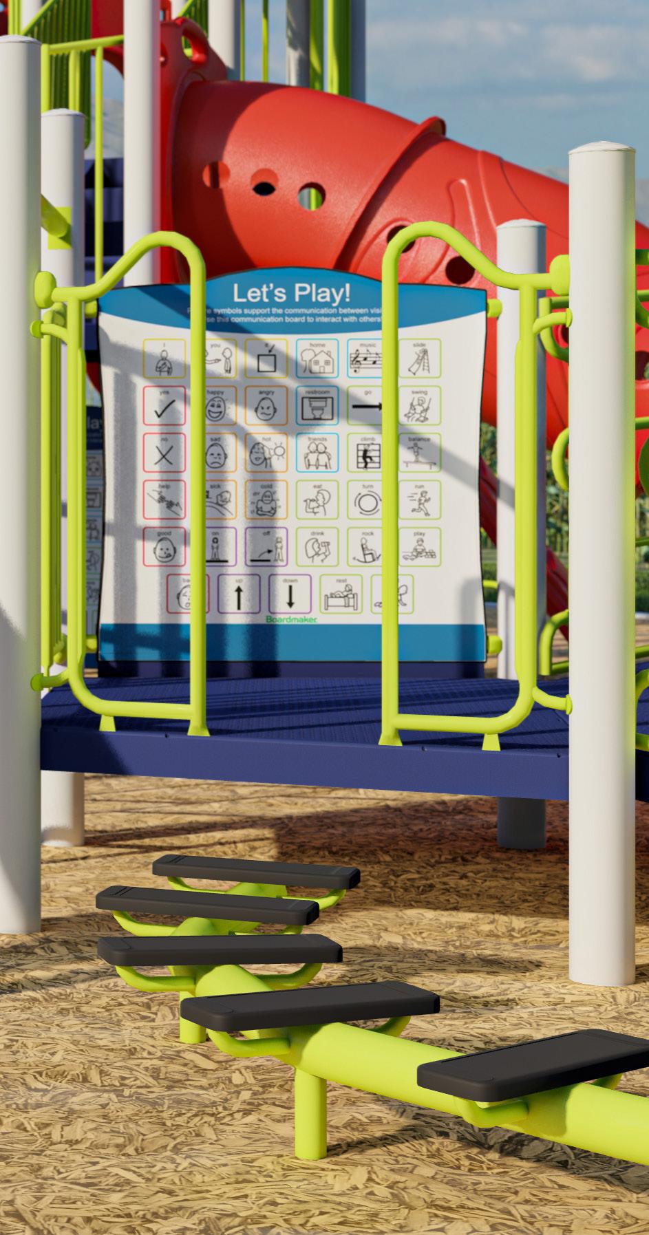 We included their Boardmaker® communication symbols on our Communication Panels to increase communication between people of all abilities on the playground! People using the boards may point to, gaze at, or respond to the Boardmaker Picture Communication Symbols® when communicating with their friends, caregivers, and family during outdoor play. These symbols may be used with or without speech, making communication possible for everyone.