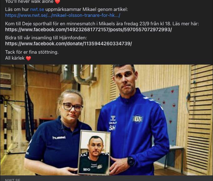 23 september arrangerades en minnesmatch för Mikael Olsson i samband med herrlagets säsongspremiär. Mikael var en trogen brukspôjk som avled i sviterna av ALS. Tack för allt Mikael, du är saknad.