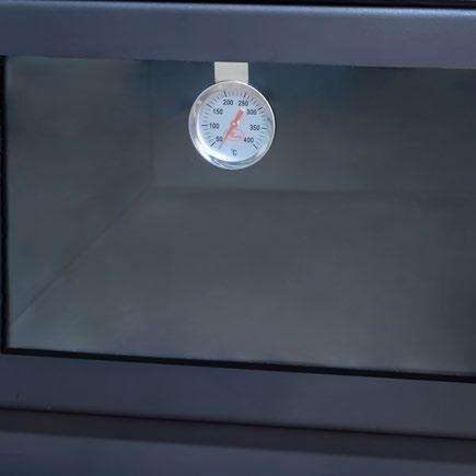 Fabricación artesanal. Fundición. Termómetro y sistema de mano fría. Cajón recoge-cenizas extraíble.