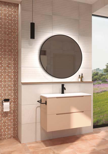 Mueble MANNING Enebro suspendido 80 cm Disponible en 60 - 80 - 100 cm. Patas y uñero tirador en negro. Columna a juego disponible.