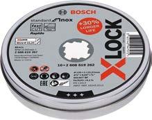 Amoladora de 700 W + lata de 10uds de discos X-LOCK para inox, manejo cómodo, cabeza plana para zonas reducidas y ventilación antipolvo. Ideal para corte y desbaste.