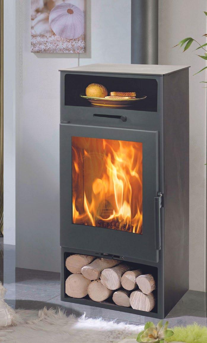Doble cos en acer de 3 i 4 mm i doble combustió. Volum de calefacció de fins a 210 m3 Amb llenyer i troncs de fins a 60 cm.