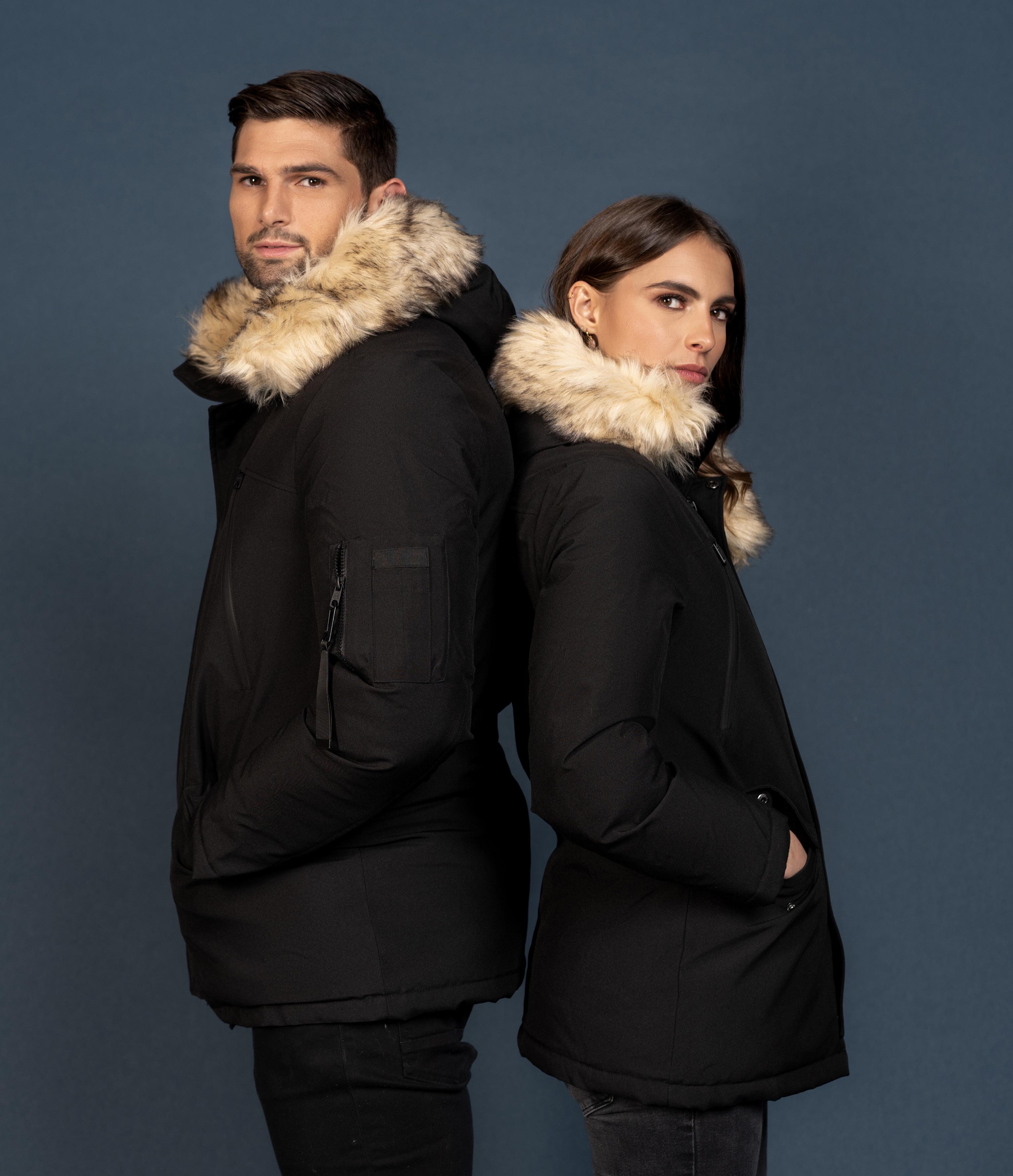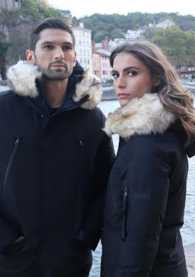 •Capuche doublée et matelassée avec fausse fourrure amovible