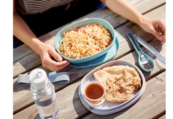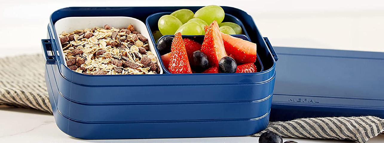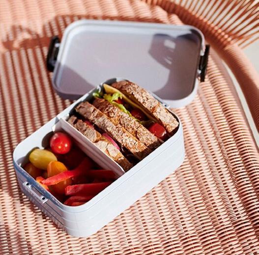 Varier devient un jeu d’enfant, grâce à cette boîte à déjeuner. Elle peut facilement contenir jusqu’à quatre tartines, mais vous pouvez également utiliser la petite boîte bento livrée avec la boîte, pour plus de variation. Ainsi, chaque déjeuner devient un repas de fête !