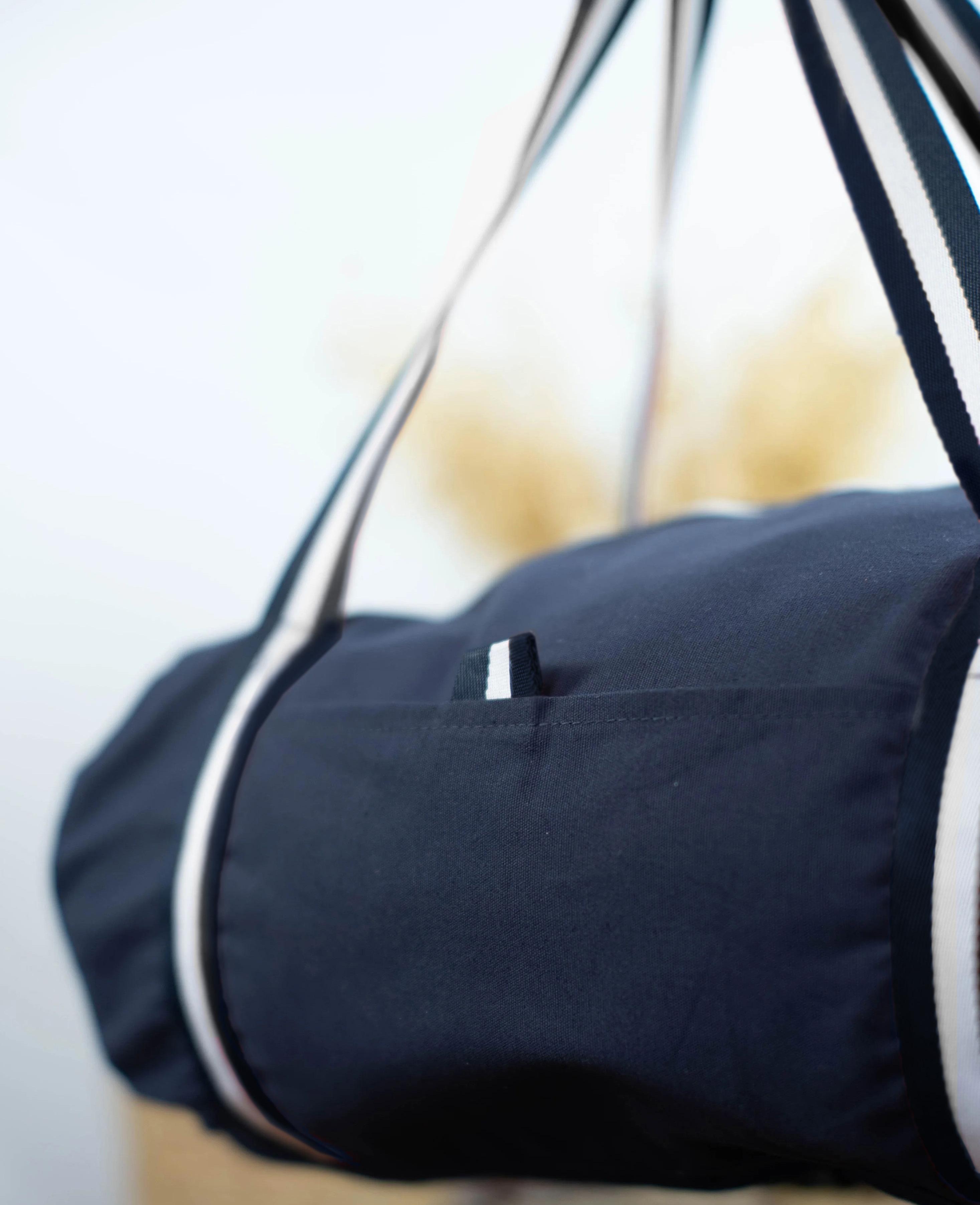 Collection de totes bags marines et noirs dans plusieurs grammages. Confectionnés en France à partir de coton et polyester recyclés, certifiés Origine France Garantie, ils sont également incroyablement solides et durables. Ils peuvent facilement contenir toutes vos affaires du quotidien, que ce soit pour aller au travail, faire les courses ou partir en voyage.