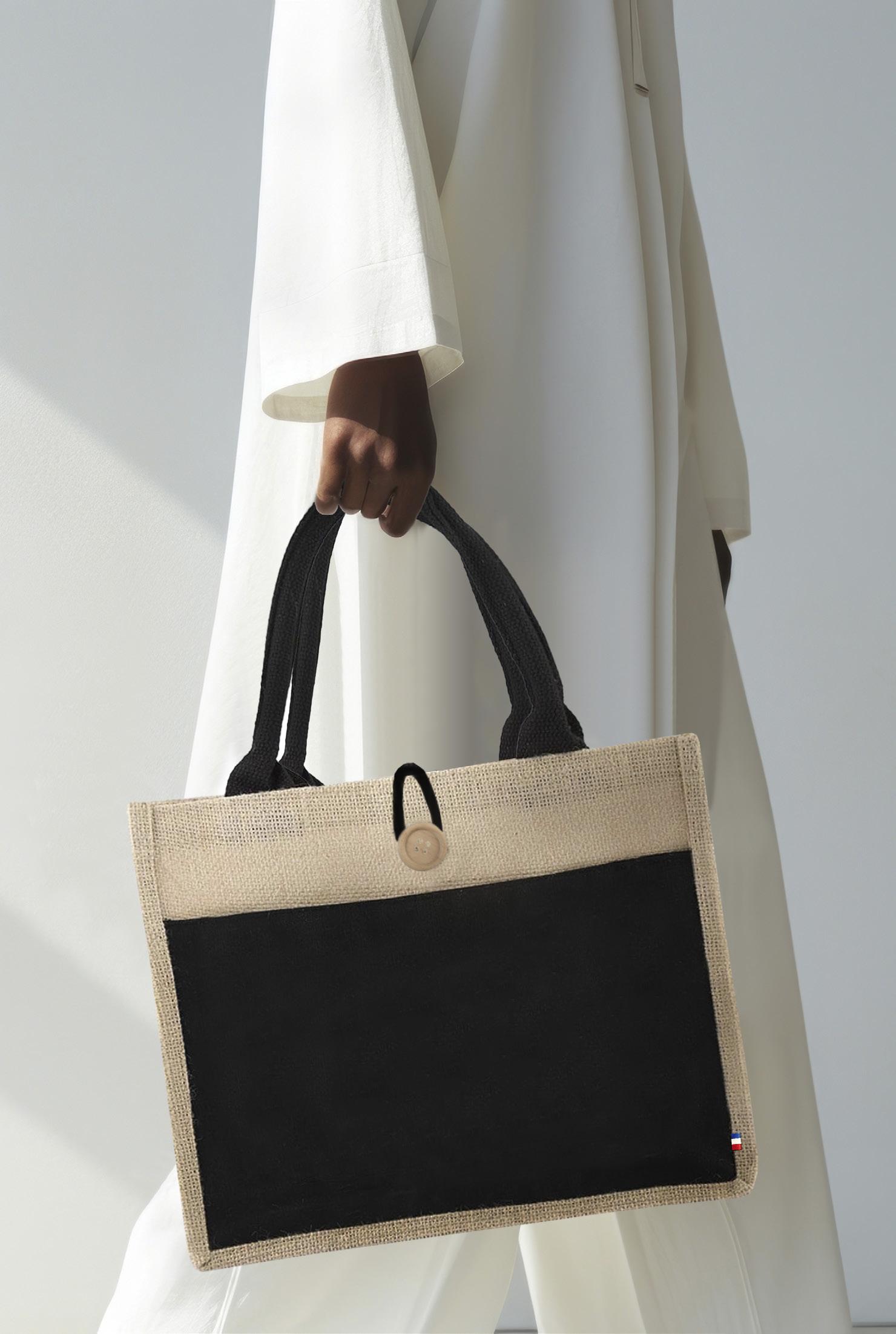 Tote bag en coton et jute, confectionné en France à partir de coton recyclé, certifié Origine France Garantie.