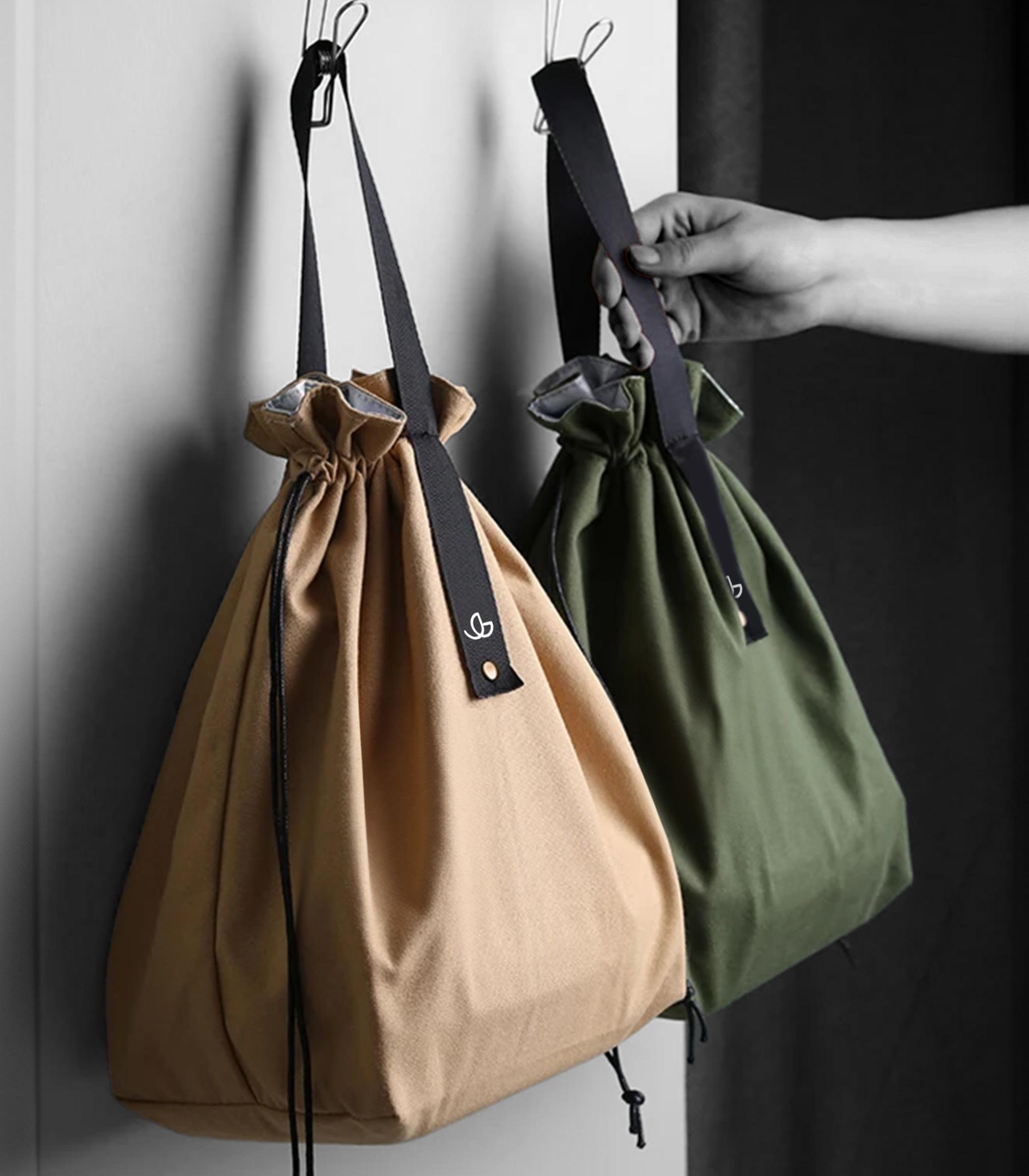 Sac en coton double poignet confectionné en France à partir de coton recyclé, certifié Origine France Garantie.