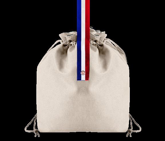 Sac 220g confectionné en France à partir de polyester recyclé, certifié Origine France Garantie.